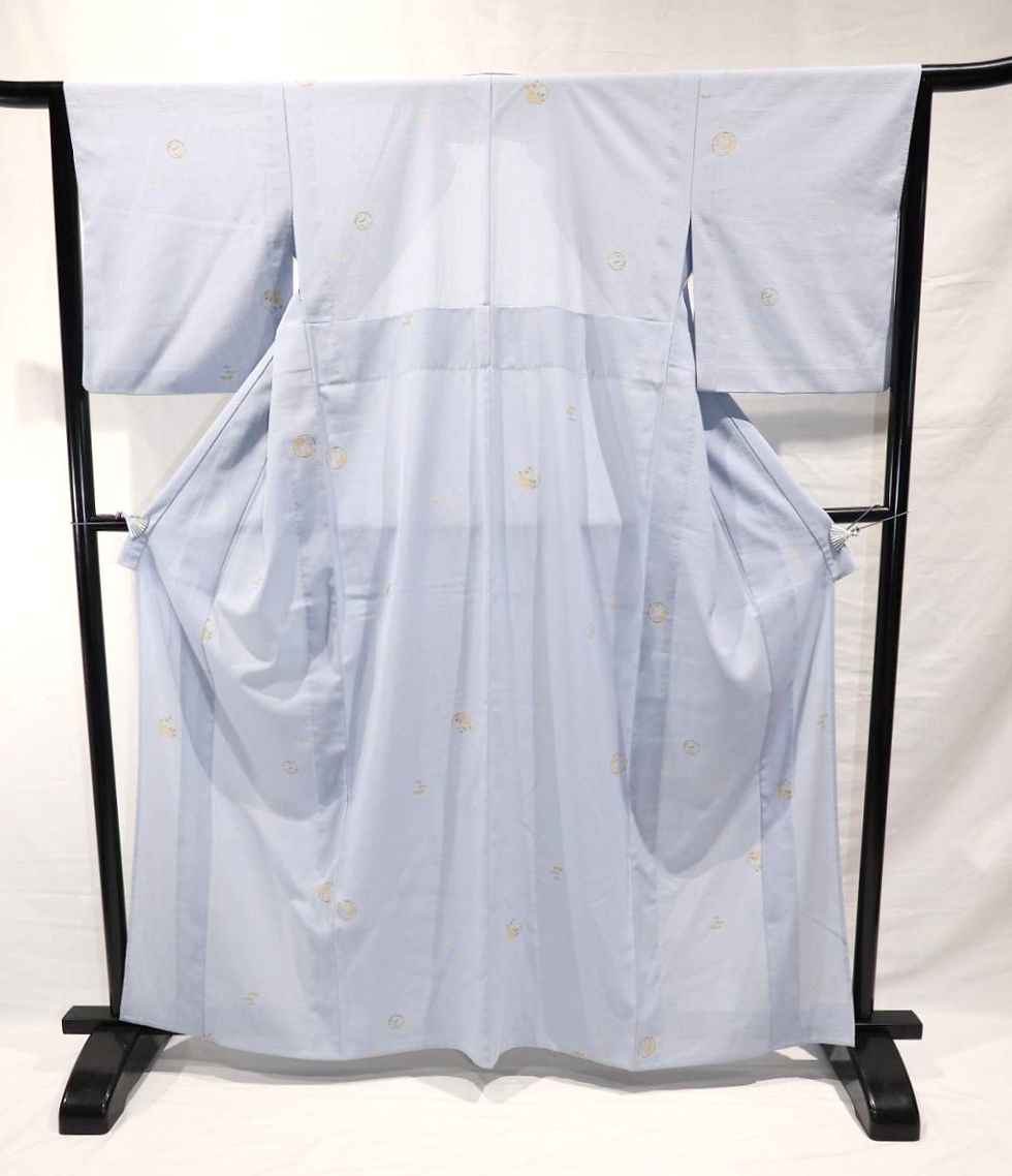 ブルーグレイ地 縞ドット柄 単衣小紋